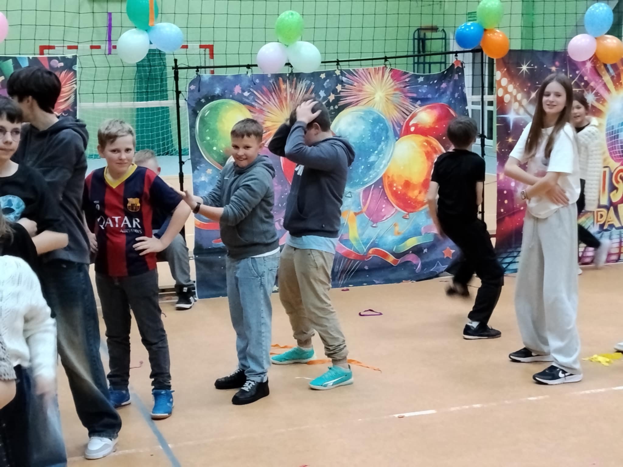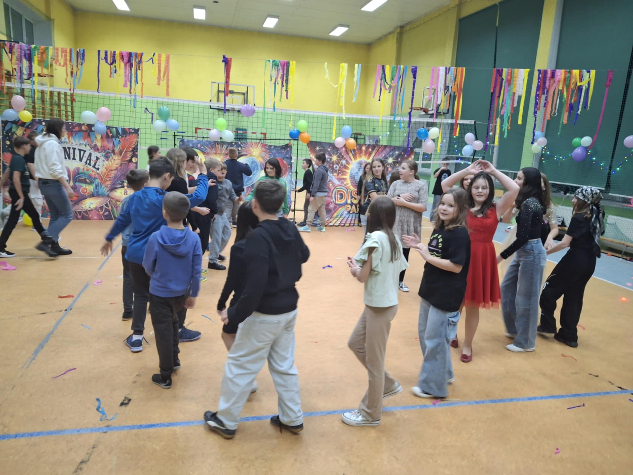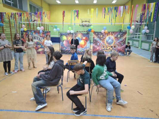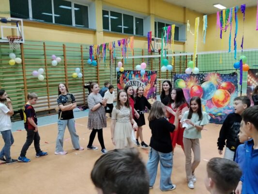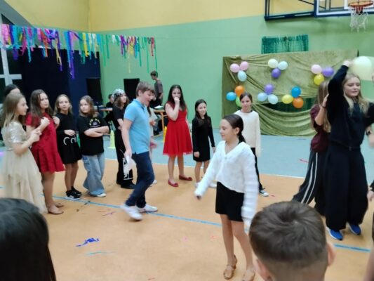 W tę środę nasza sala gimnastyczna zamieniła się w prawdziwą dyskotekę! Uczniowie klas 4–8 bawili się przy najlepszych hitach oraz brali udział w andrzejkowych konkursach.
