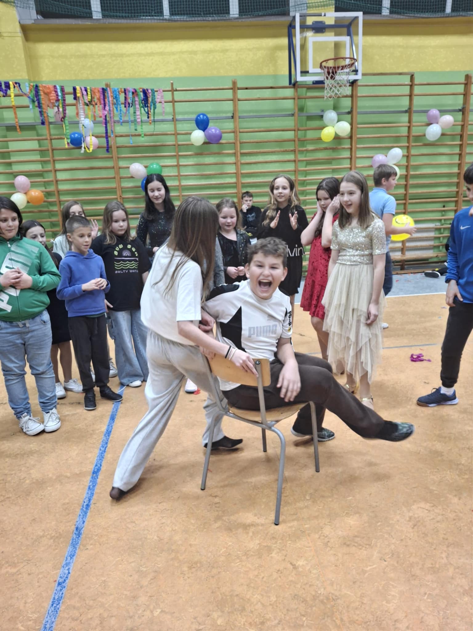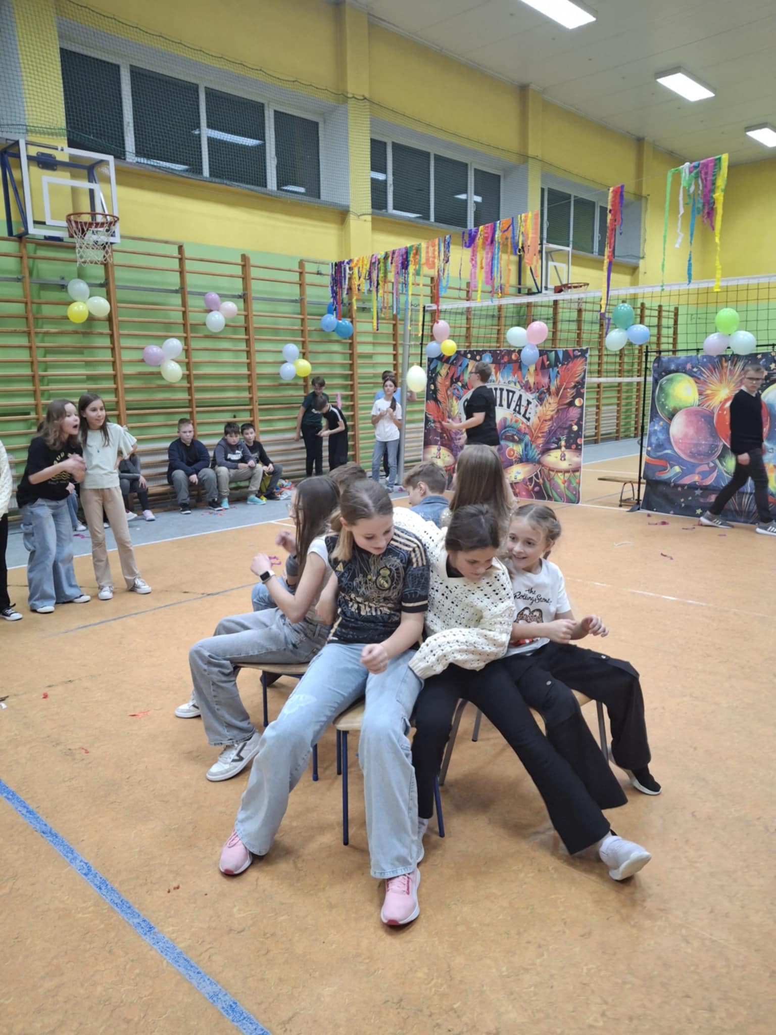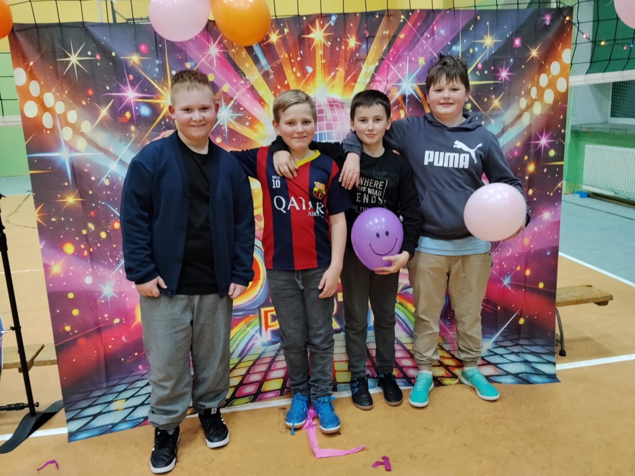 W tę środę nasza sala gimnastyczna zamieniła się w prawdziwą dyskotekę! Uczniowie klas 4–8 bawili się przy najlepszych hitach oraz brali udział w andrzejkowych konkursach.