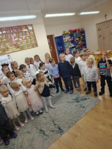 W dniu 10 października 2025 roku w naszym przedszkolu odbyła się akademia z okazji Dnia Edukacji Narodowej. Celem spotkania było podziękowanie nauczycielom i wszystkim pracownikom przedszkola za ich trud, troskę i codzienną pracę na rzecz dzieci. Atmosfera podczas akademii była niezwykle ciepła i rodzinna. Nie zabrakło także ciepłych słów i życzeń od dzieci oraz przedstawicieli rodziców. Był to wyjątkowy dzień, który przypomniał wszystkim, jak ważna i piękna jest praca nauczyciela oraz jak wiele radości przynosi kontakt z dziećmi.