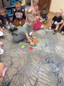 15 września w naszym przedszkolu obchodziliśmy wyjątkowe święto – Międzynarodowy Dzień Kropki. Tego dnia dzieci z grupy „Biedronek” i „Tygrysków” odkrywały swoje talenty, rozwijały kreatywność i wiarę we własne możliwości. Nie zabrakło również świetnej zabawy! Dzieci brały udział w kropkowych zabawach ruchowych, układały kolorowe wzory z kropek. Dzień Kropki był dla wszystkich okazją do twórczej zabawy, wzmacniania pewności siebie i odkrywania, że nawet mała kropka może być początkiem czegoś wielkiego!