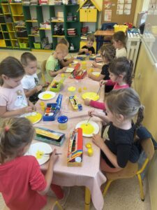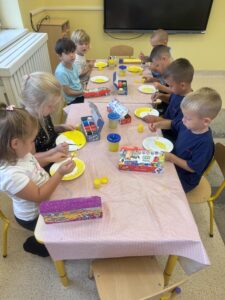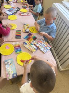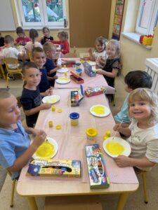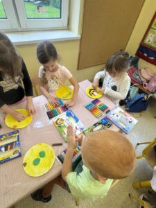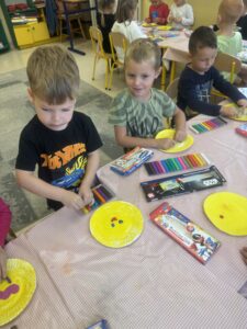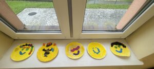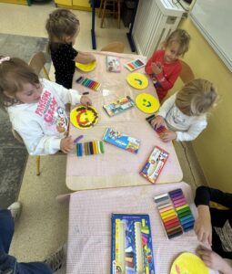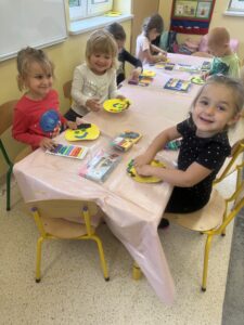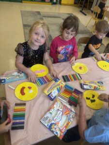 W tym tygodniu w grupie „Tygryski” rozmawialiśmy o uczuciach i emocjach. Dzieci z grupy 5-latków zamieniły papierowe talerzyki w niezwykłe buźki, które wyrażały radość, smutek, złość czy zdziwienie. Najpierw talerzyki zostały pomalowane żółtą farbą, a następnie przedszkolaki za pomocą plasteliny tworzyły oczy, brwi i usta, nadając im wyjątkowy charakter. W ten sposób powstała barwna „Galeria emocji”, która pokazała, że każdy z nas odczuwa i przeżywa uczucia na swój własny, niepowtarzalny sposób.