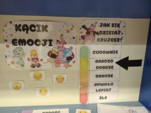 Na zakończenie projektu stworzyliśmy w Sali „Kącik emocji” oraz wykonaliśmy eksperyment „Wulkan emocji”.