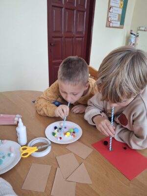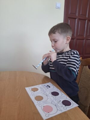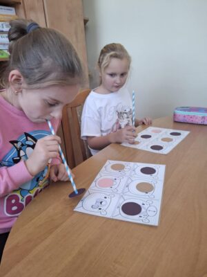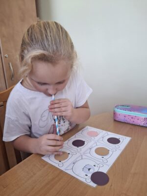 - Dzień Kredki– kolorowe ćwiczenia logopedyczne połączone były z wykonaniem prac plastycznych, co pozwoliło dzieciom rozwijać nie tylko mowę, ale doskonalić też umiejętności grafomotoryczne.
