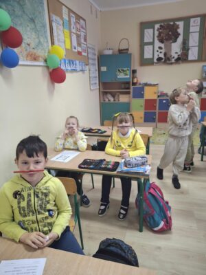 W ramach naszej szkolnej innowacji „Mówimy Świątecznie – Logopedyczny Kalendarz Nietypowych Dni” uczniowie klasy 1 aktywnie uczestniczyli w twórczych i językowych zadaniach, które rozwijają ich sprawność komunikacyjną oraz integrują społeczność klasową.