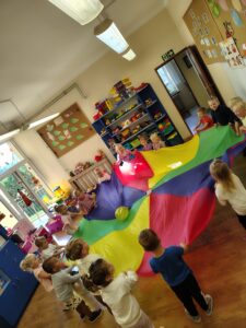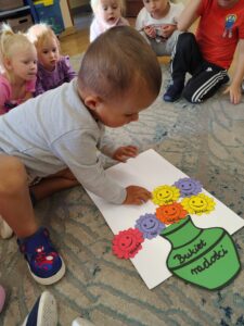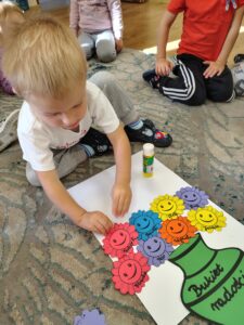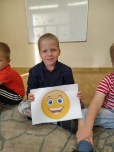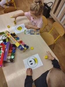 Najmłodsza grupa przedszkolna „Biedronki” bierze udział w projekcie „Kolorowe emocje”, który ma na celu rozwijanie empatii i umiejętności społecznych. W tym tygodniu dzieci poznały pierwszą emocję – radość, biorąc udział w zabawach ruchowych muzycznych i plastycznych.