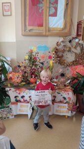 Wszystkie dzieci, które wzięły udział w konkursie, otrzymały nagrody i upominki za swoje piękne, pełne jesiennego klimatu prace.Dziękujemy wszystkim uczestnikom za zaangażowanie, pomysłowość i twórczą energię! 🍂🕸️