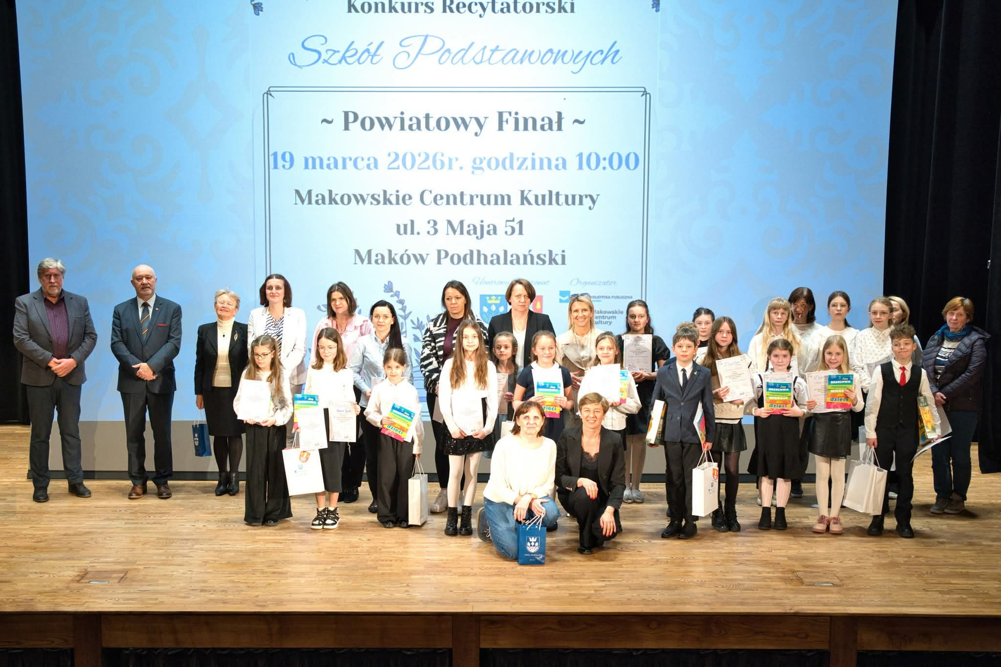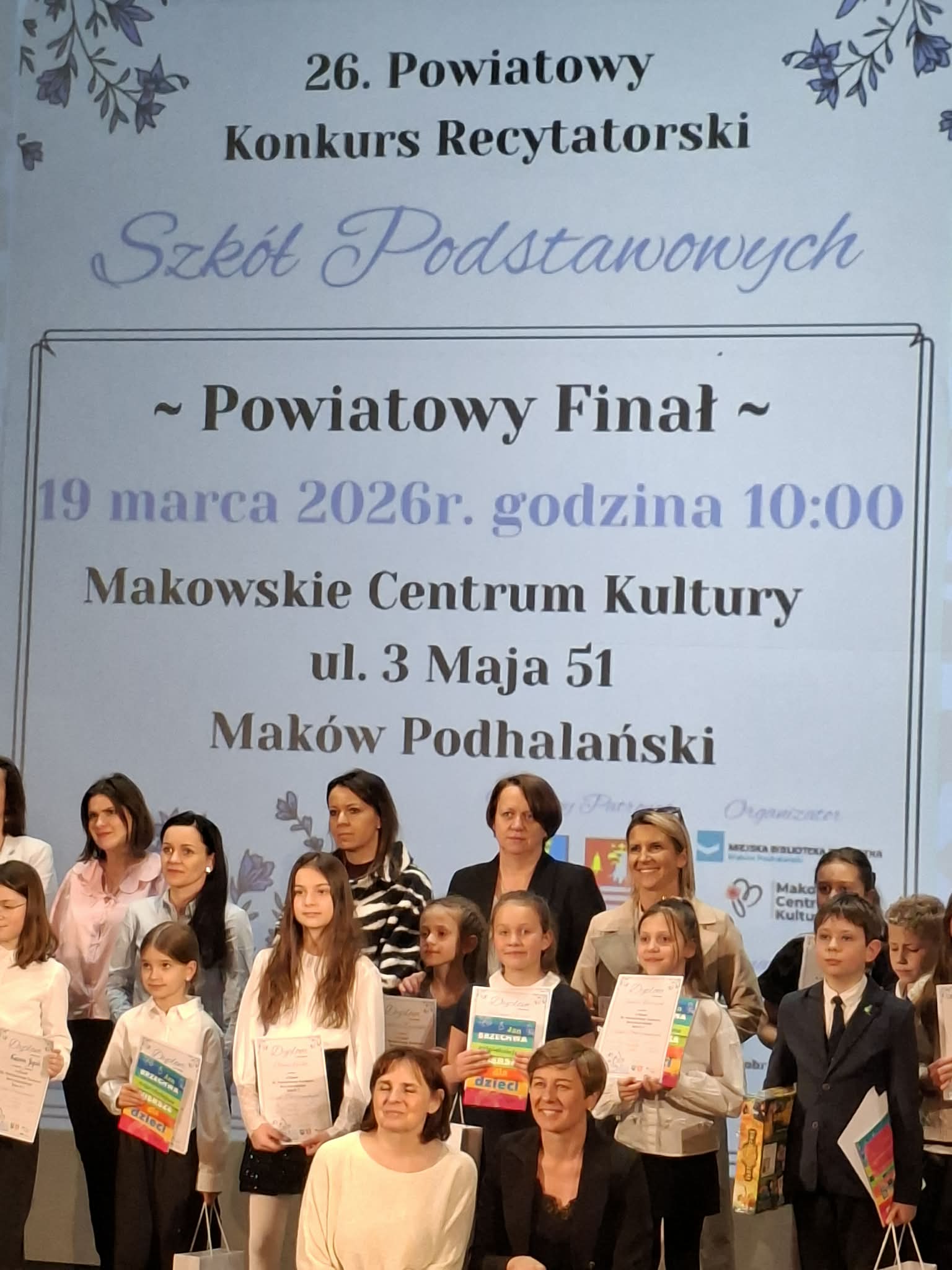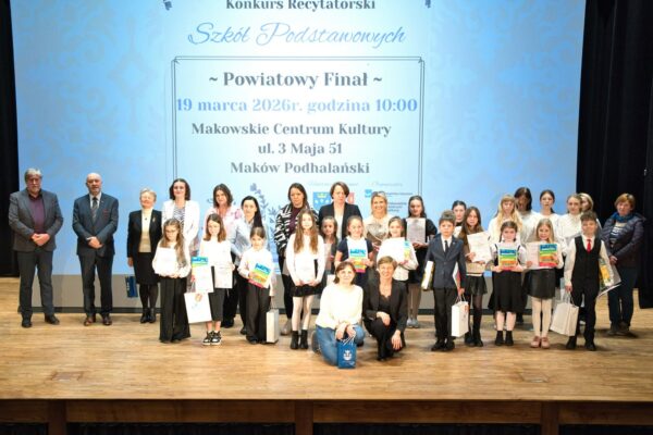 Dnia 19 marca 2026 r. w Makowskim Centrum Kultury w Makowie Podhalańskim odbył się finał 26. Powiatowego Konkursu Recytatorskiego Szkół Podstawowych dla uczniów klas 0–5. Wybrani w eliminacjach przedstawiciele każdej z gmin naszego powiatu stanęli w szranki w dwóch kategoriach: klas 0 – 2 i klas 3 – 5.