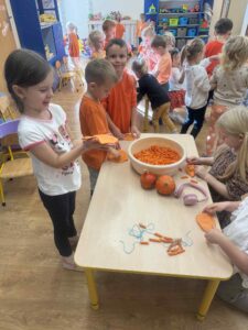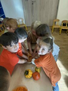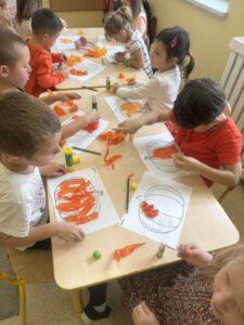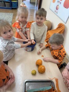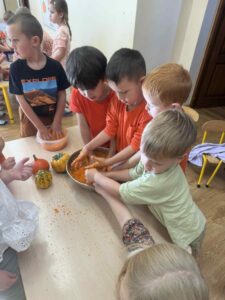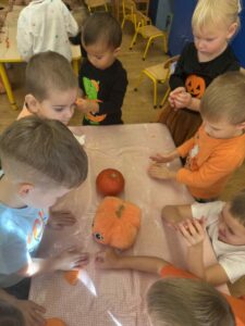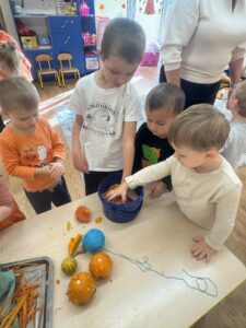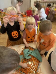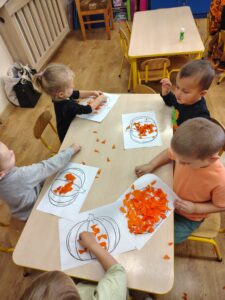 Dziś w naszym przedszkolu obchodziliśmy Święto Dyni! 🍂 Dzieci uczestniczyły w wyjątkowych zajęciach sensorycznych, podczas których mogły odkrywać jesienne kolory, zapachy i faktury. Wspólnie bawiliśmy się farbowanym ryżem, kolorowym makaronem oraz domową ciastoliną w dyniowych barwach.
