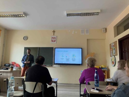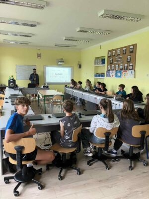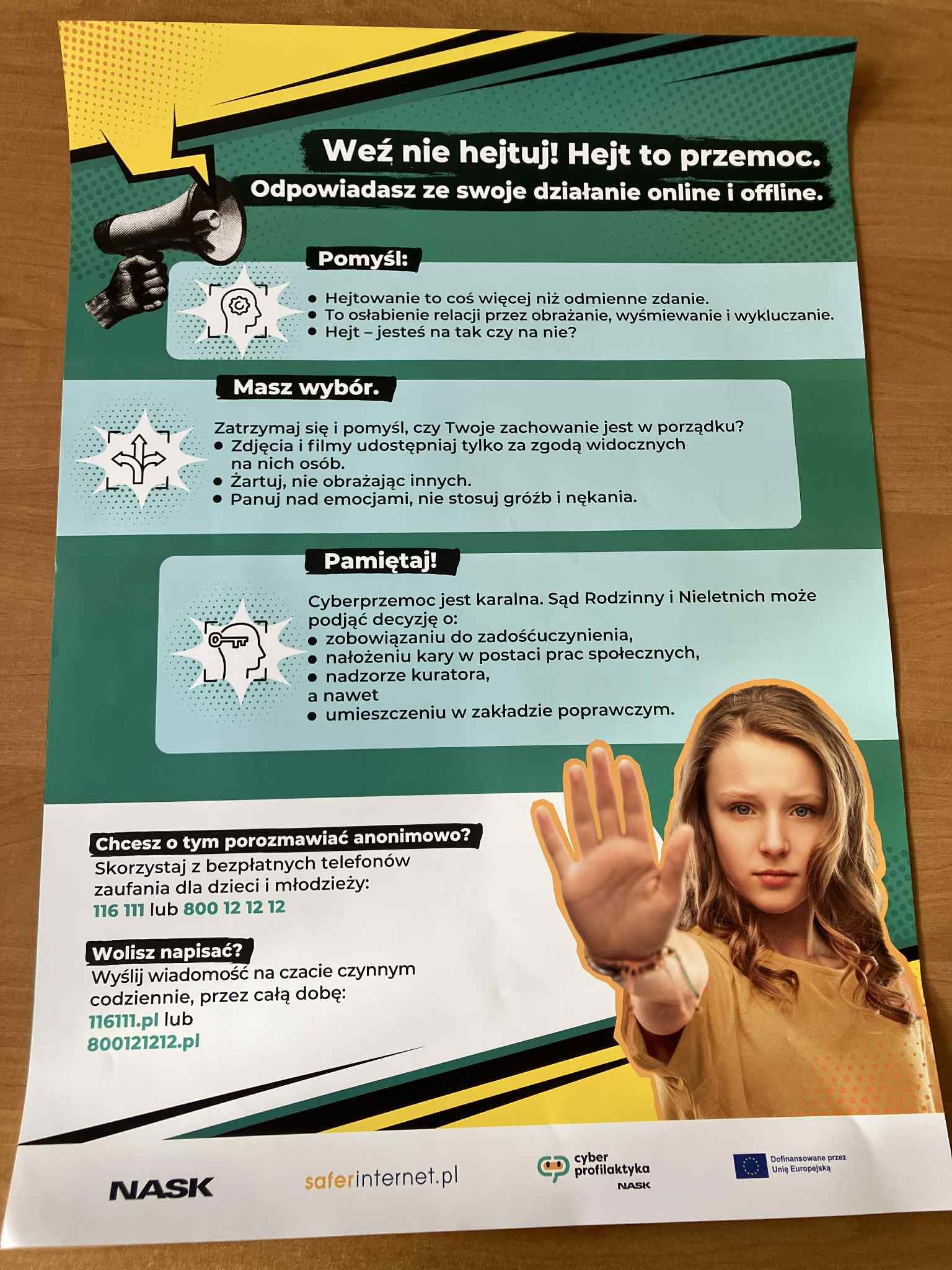 W dniu 16.09.2025 r. w ramach Cyberlekcji 3.0 uczniowie oraz nauczyciele naszej szkoły uczestniczyli w warsztatach dotyczących tematów cyberprzemocy, nadużywania ekranów oraz cyberhigieny (podstawowych zasad bezpieczeństwa korzystania z urządzeń).