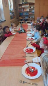 Nie zabrakło również świątecznych piosenek, kolęd oraz rozmów o zwyczajach bożonarodzeniowych. Przy wspólnym stole panowała ciepła, rodzinna atmosfera, pełna uśmiechów i wzruszeń.