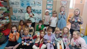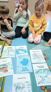 Dzisiejszego dnia dzieci z grupy Sówki odbyły zimową podróż do Arktyki i Antarktydy, poznając ich mieszkańców – m.in.niedźwiedzia polarnego, lisa i sowę śnieżną oraz pingwiny, foki i orki. Po prezentacji każde dziecko wybrało ulubione zwierzę z tych krain i otrzymało pamiątkowy medal.