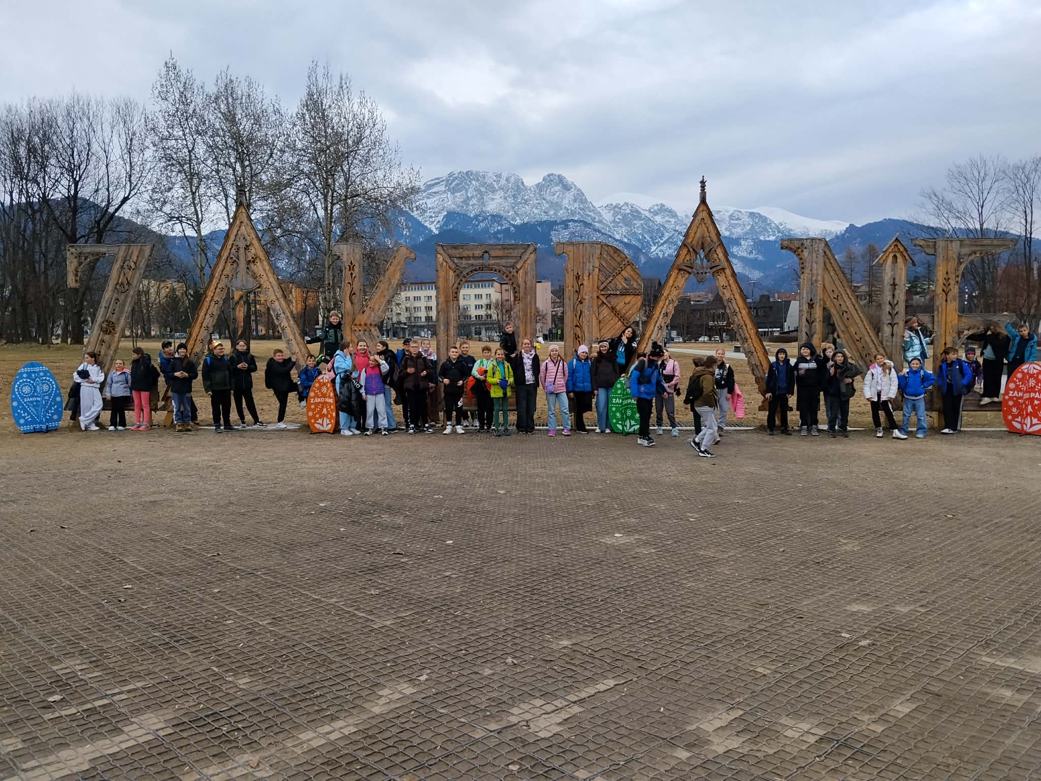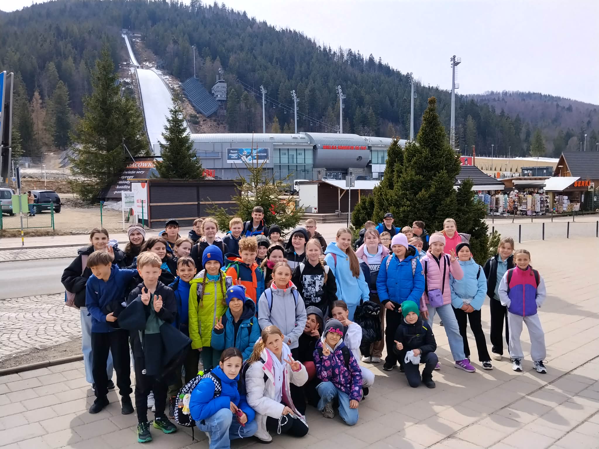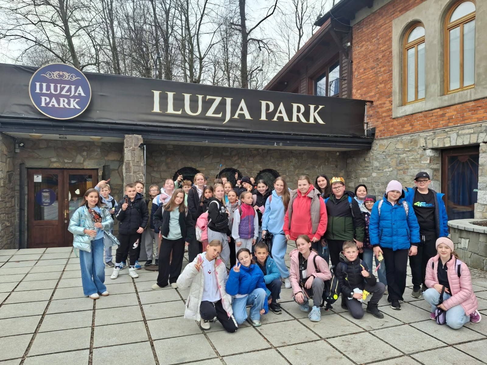 Dnia 25 marca 2026 r. uczniowie klasy IV i V wraz z opiekunami pojechali na wycieczkę do Zakopanego. Nie lada atrakcją okazał się sam przejazd pociągiem. Pierwszym punktem naszego programu było Centrum Edukacji Przyrodniczej TPN. W tym niezwykle nowoczesnym miejscu ogromne wrażenie zrobiła na nas największa w Polsce makieta Tatr, przy której wysłuchaliśmy ciekawej prezentacji o powstawaniu gór. Dzięki interaktywnym stanowiskom dowiedzieliśmy się, jak zachowywać się na szlaku i jakie zwierzęta zamieszkują park narodowy. Wysłuchaliśmy również opowieści himalaisty o tym, jak zdobywa się najwyższe góry świata. Następnie udaliśmy się spacerem pod skocznię. W drodze na Krupówki dzieci zakupiły pamiątki. Na koniec przyszedł czas na zabawę w Parku Iluzji. To miejsce całkowicie nas zaskoczyło! Mogliśmy tam zobaczyć zjawiska fizyczne i optyczne, które przeczą logice. Największą atrakcją była kabina, w której „poświstuje halny wiater” oraz „włosy co dosłownie stanęły dęba na głowie”. Uczestniczyliśmy w pokazie prawdziwych piorunów o napięciu 2 000 000 wolt. To była świetna lekcja fizyki podana w bardzo atrakcyjnej formie. Program wyjazdu obfitował w atrakcje łączące edukację z rozrywką. Wycieczka była bardzo udana. Połączyliśmy zdobywanie wiedzy o tatrzańskiej faunie i florze z odkrywaniem tajemnic iluzji. Wróciliśmy zmęczeni, ale pełni wrażeń i bogatsi o nowe doświadczenia.