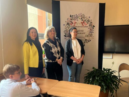 i interpunkcyjnej. W dyktandzie wzięło udział 16 uczniów z wszystkich szkół podstawowych Gminy Jordanów. Nad prawidłowym przebiegiem dyktanda czuwała 3-osobowa komisja w składzie: