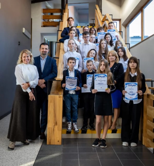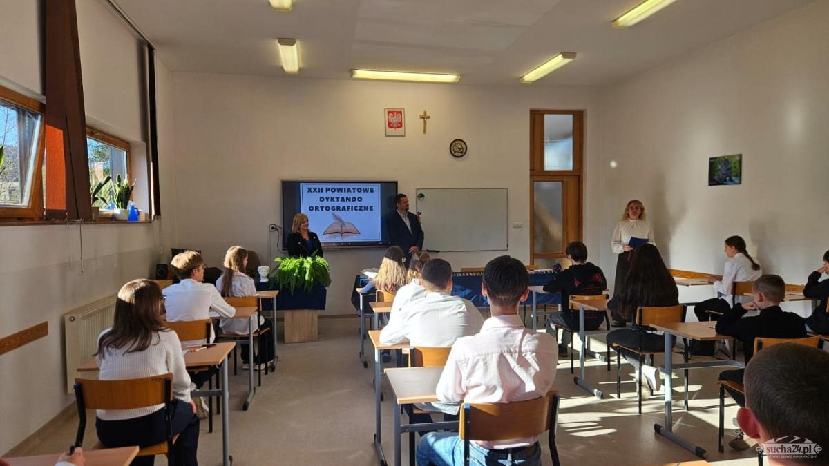 Dnia 4 listopada 2025 r. w budynku liceum odbyło się XXII Powiatowe Dyktando Ortograficzne organizowane przez Gminny Ośrodek Kultury w Stryszawie, przy współudziale Starostwa Powiatowego oraz Liceum Ogólnokształcącego nr I im. Marii Skłodowskiej-Curie w Suchej Beskidzkiej. W konkursie wzięły udział nasze dwie uczennice: Katarzyna Mołocznik z kl. VII i Milena Kutek z kl. V. Dyktando obejmowało dwie kategorie wiekowe: dziecięcą i młodzieżową. Teksty dostosowano do każdej grupy. Ostatecznie Milena zajęła IV miejsce, a Katarzyna - XV. Serdecznie gratulujemy!!!